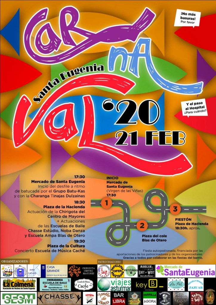 Mañana 21 de febrero se celebrará Carnavales en el cole,y por la tarde, a partir de las 17.00h, os esperamos en la plaza del mercado de Santa Eugenia para organizarnos y salir a las 17.30 h junto a Batu-kas abriendo el pasacalles.