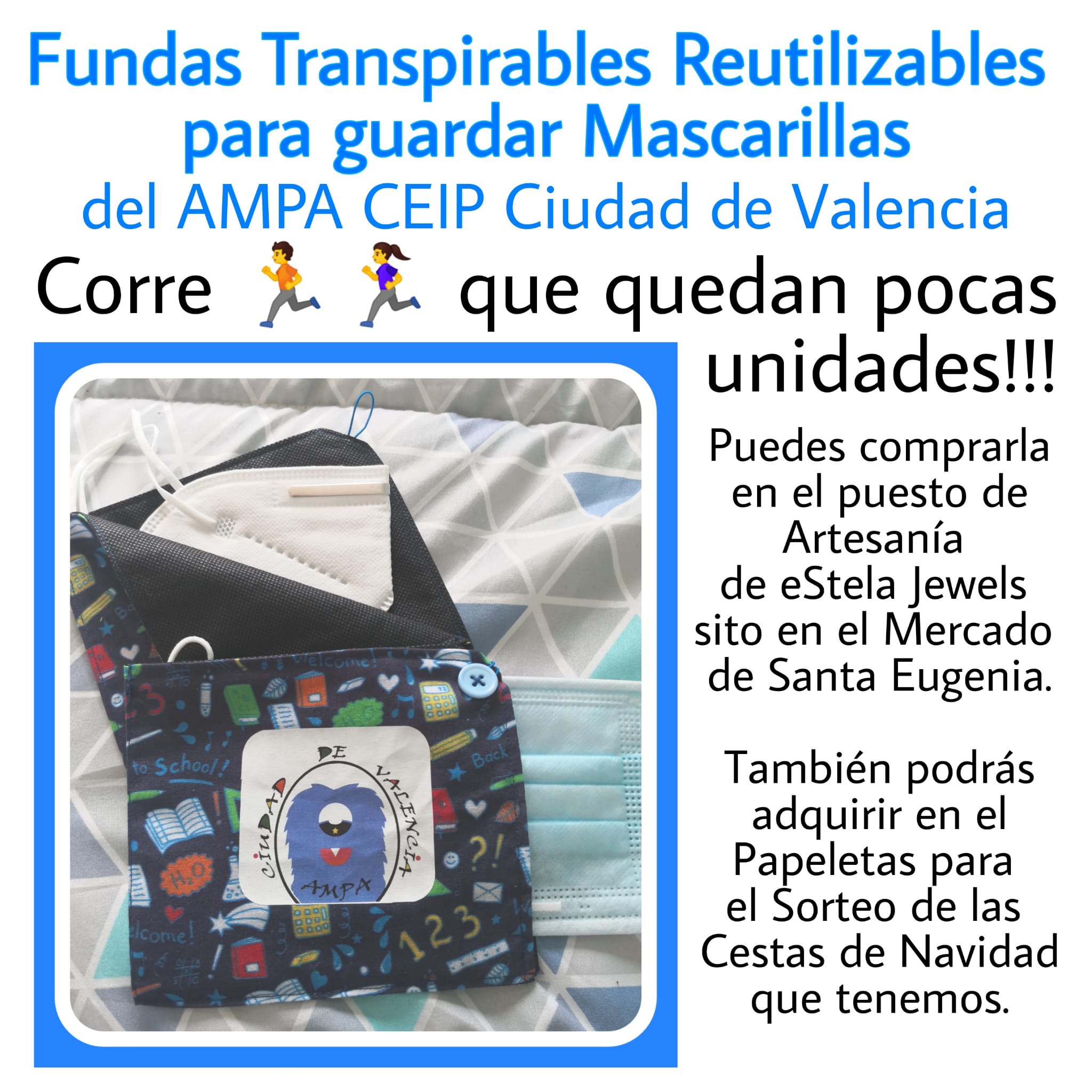 Eva, una mamá del cole, ha confeccionado estas estupendas fundas para guardar mascarillas con el logo de la AMPA y ha elaborado este cartel. ¡No te quedes sin la tuya! y si aún no has comprado papeletas para la porra de Navidad aquí tienes otra oportunidad. Lo que se recaude ayuda a financiar actividades y servicios de la AMPA. ¡¡Gracias, Eva!!