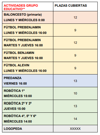 **Ya se ha comunicado a las familias que se han quedado en lista de espera de