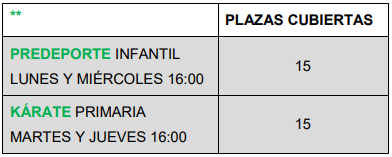 kárate. Seguimos en trámites para conseguir otro profesor/a de kárate y crear otro